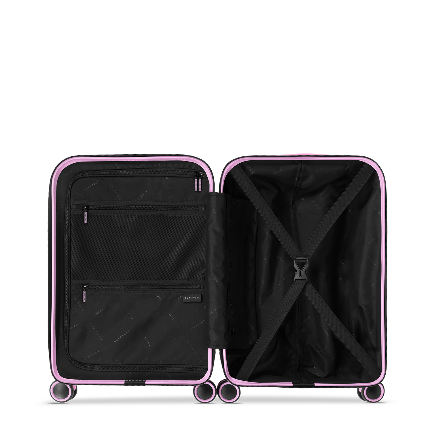 - Cet ensemble contient le Fondant Pink Cabine valise (55 cm) et le Expression Housse de Protection (55 cm).