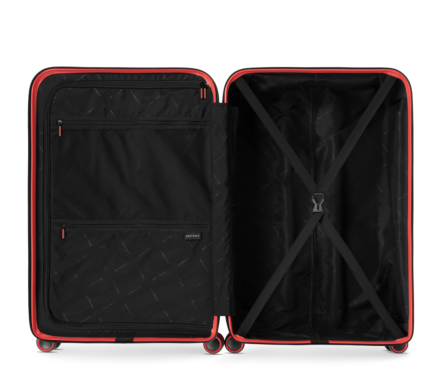 - Cet ensemble comprend le Radiant Red Soute valise (28 pouces), le Radiant Red Cabine valise (20 pouces) et deux Expression Housses de Protection (20 pouces et 28 pouces).