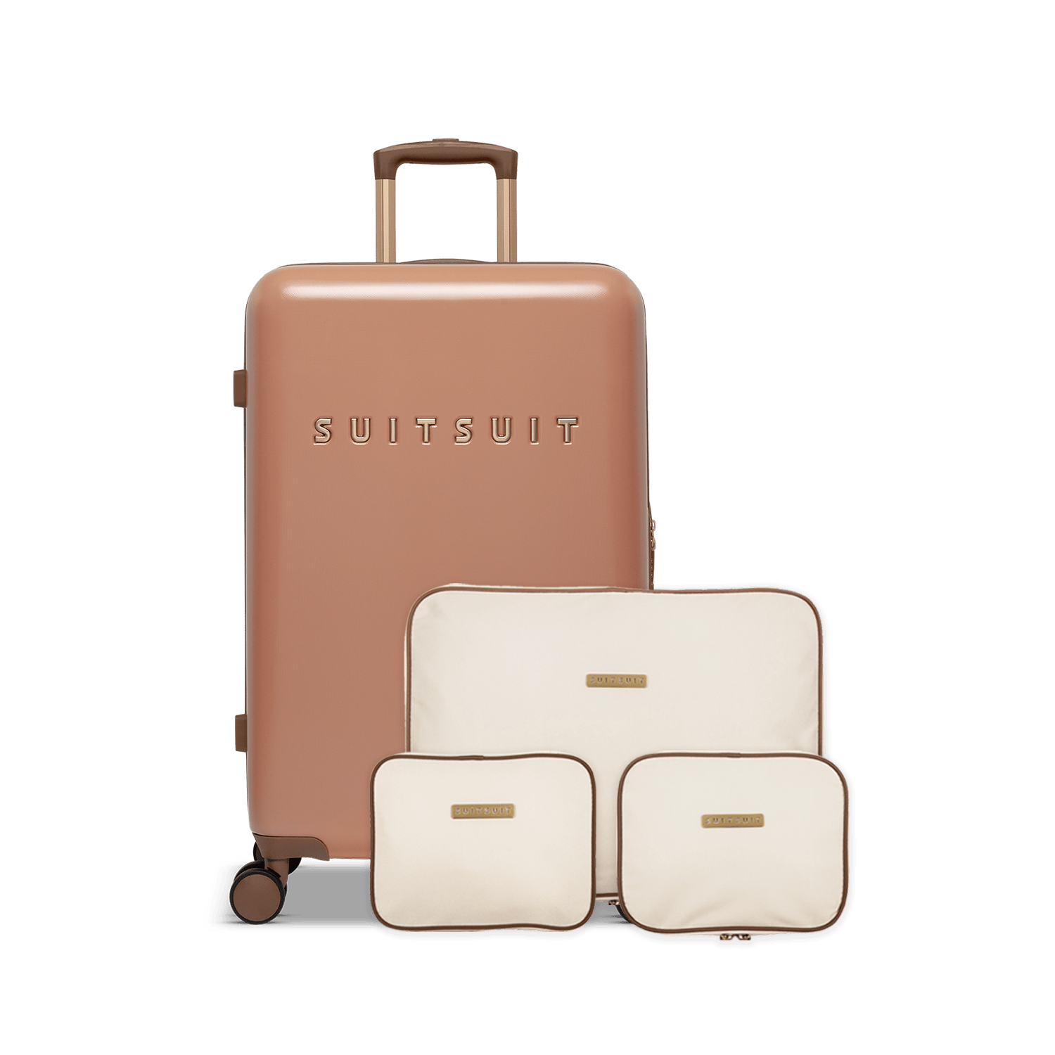 • This set contains the Italian Clay check-in suitcase (66 CM) and the Antique White packing cube set (66 CM).