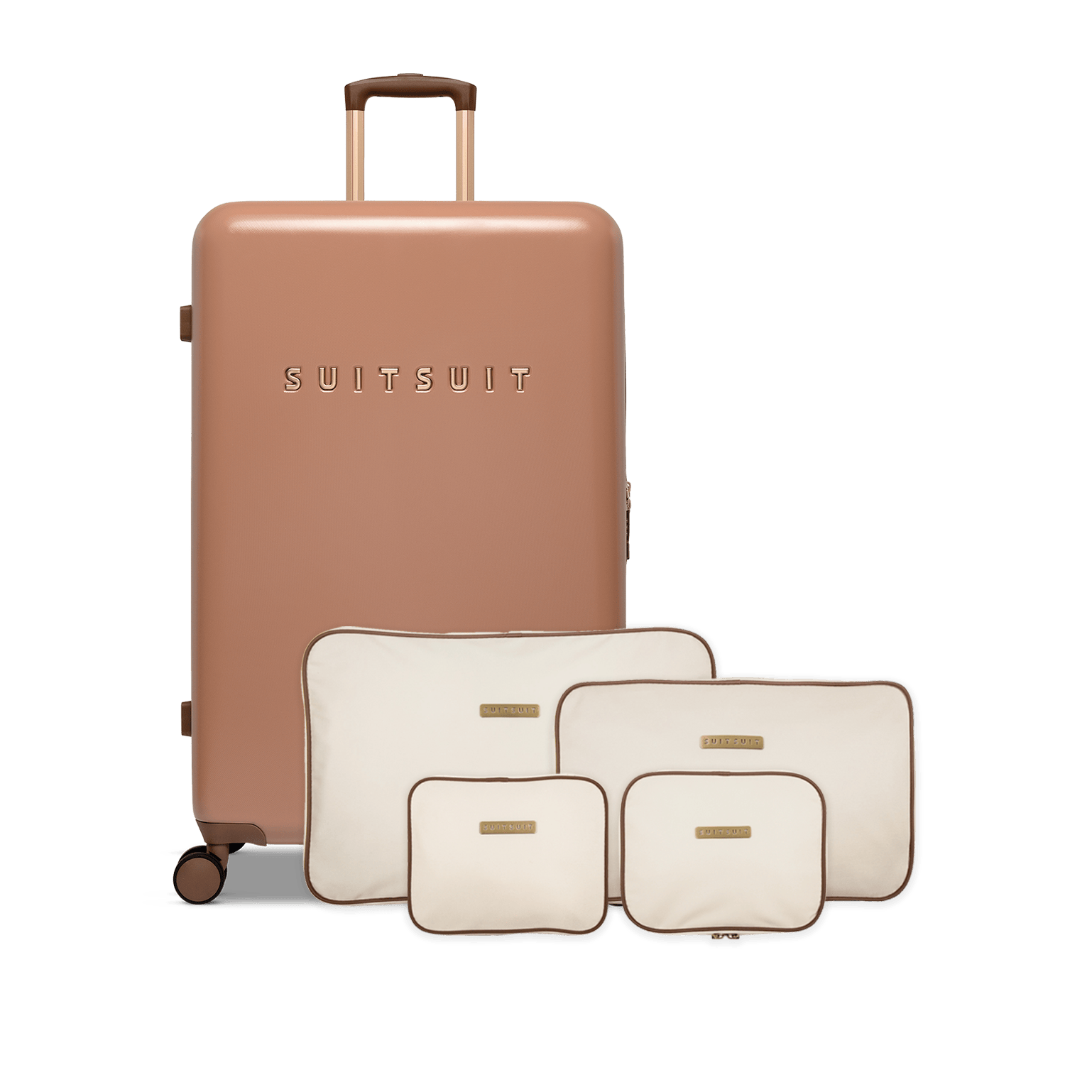 - This set contains the Italian Clay check-in suitcase (76 CM) and the Antique White packing cube set (76 CM).