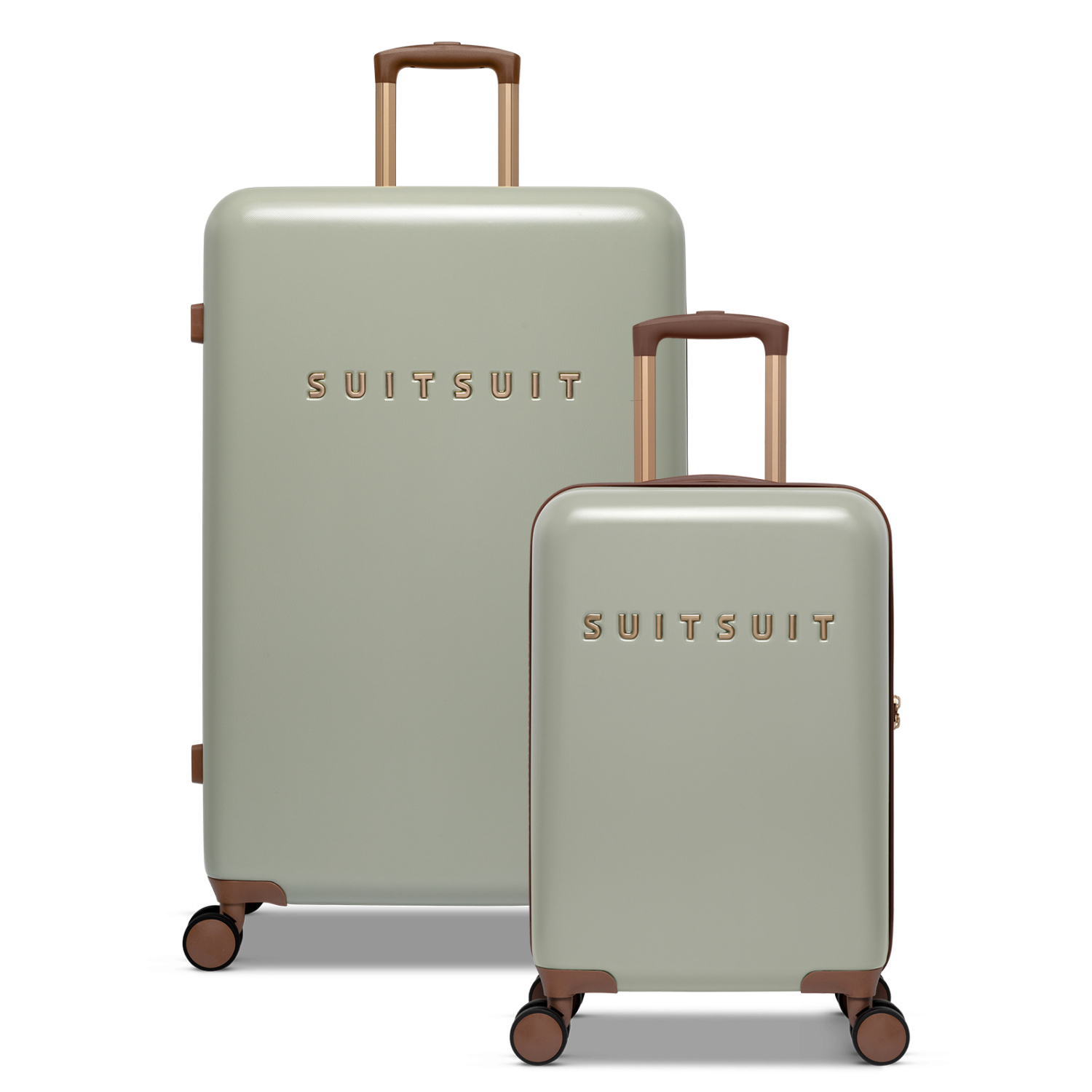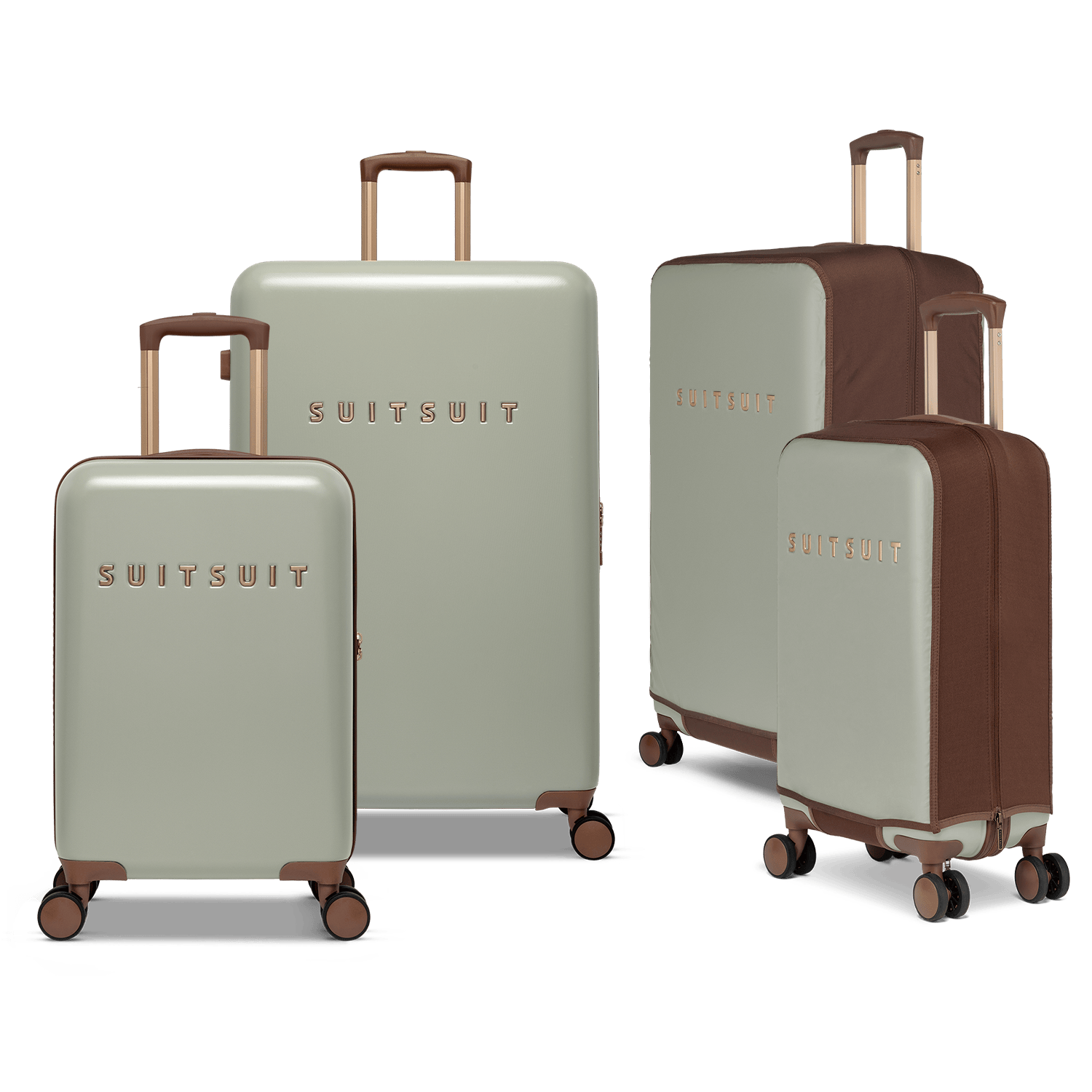- This set includes the Sustained Grey suitcase (76 CM), the Sustained Grey carry-on suitcase (55 CM), and two Burned Caramel protection covers (55 CM and 76 CM)