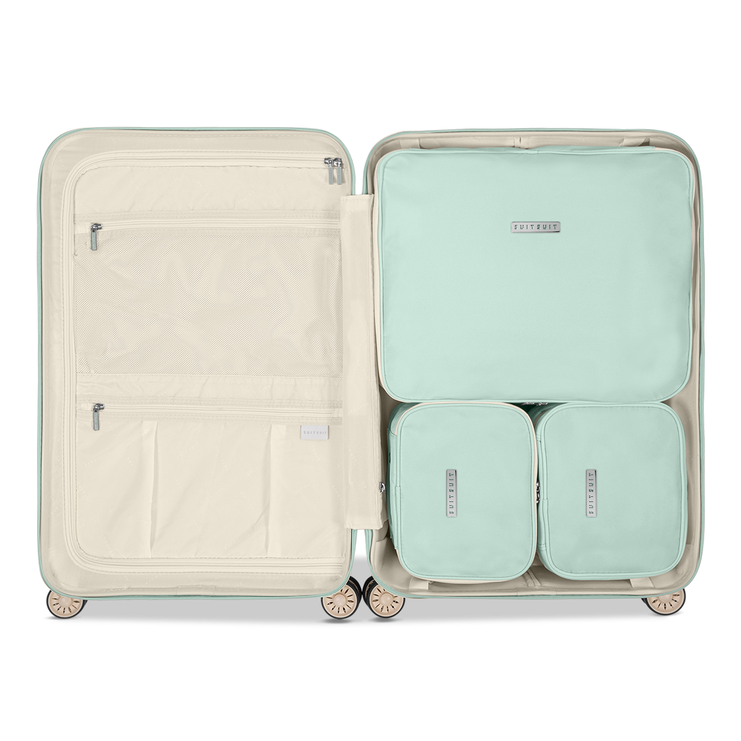 Ce Set de Organisateurs est spécialement assemblé pour notre moyenne (66 cm) valises. L'ensemble se compose de trois types d'organisateurs différents qui s'adaptent parfaitement dans votre valise. L'ensemble s'adapte parfaitement à faire une utilisation optimale de tout l'espace de votre valise. De cette façon, vous êtes parfaitement préparé pour vos vacances!