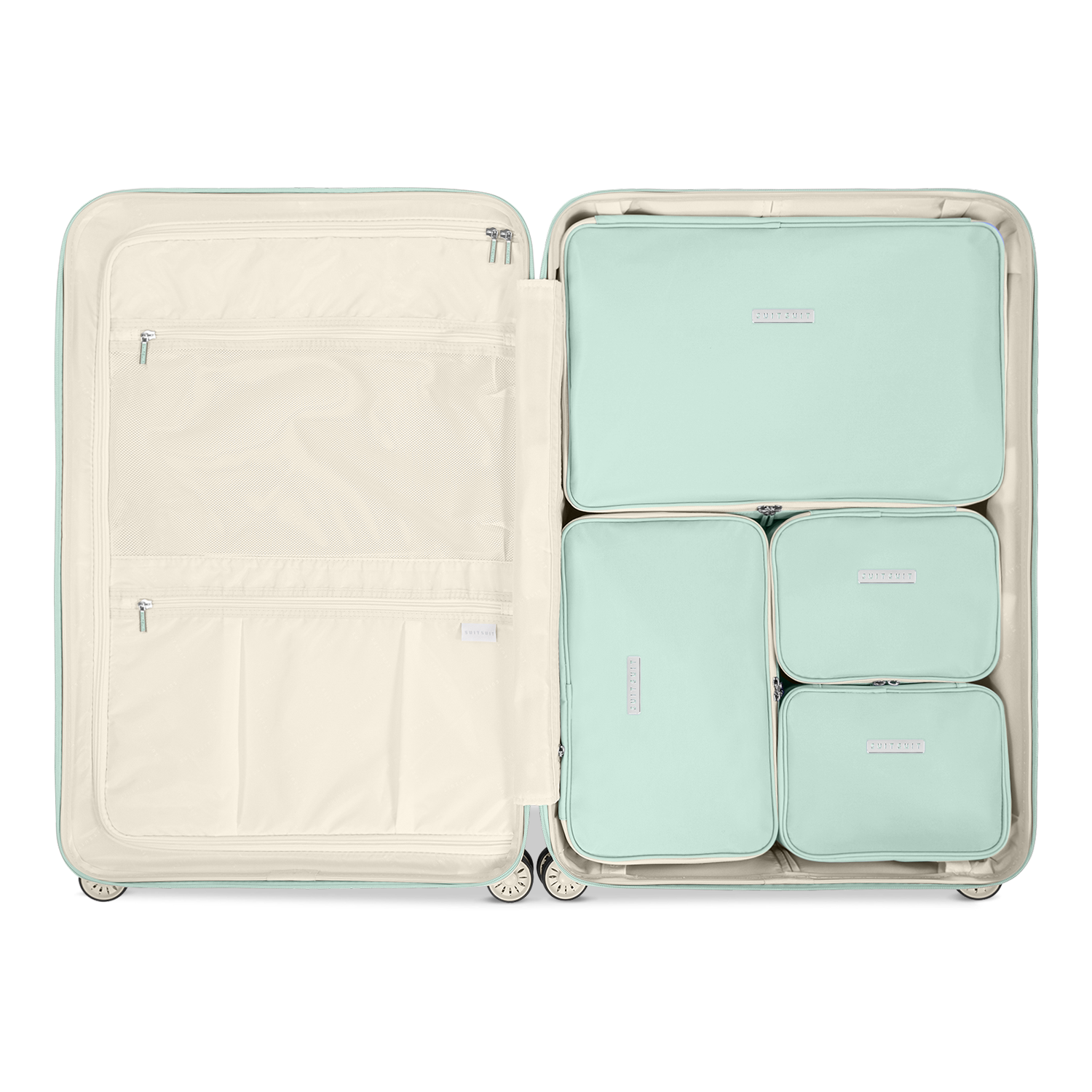 Ce Set de Organisateurs est spécialement assemblé pour notre grand (76 cm) valises. L'ensemble se compose de quatre types d'organisateurs différents qui s'adaptent exactement à votre valise. L'ensemble s'adapte parfaitement à faire une utilisation optimale de tout l'espace de votre valise.