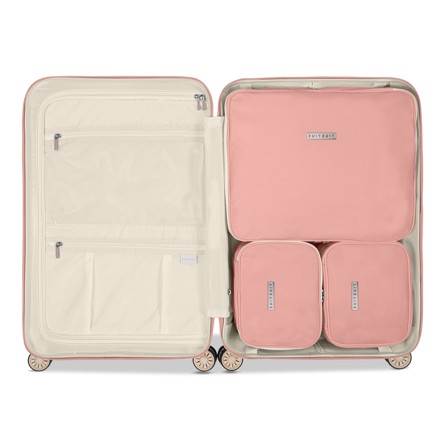Ce Set de Organisateurs est spécialement assemblé pour notre moyenne (66 cm) valises. L'ensemble se compose de trois types d'organisateurs différents qui s'adaptent parfaitement dans votre valise. L'ensemble s'adapte parfaitement à faire une utilisation optimale de tout l'espace de votre valise. De cette façon, vous êtes parfaitement préparé pour vos vacances!