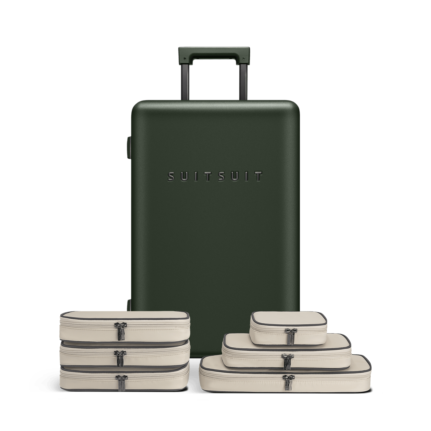 - This set contains the Dark Olive check-in suitcase (66 CM) and the Faded Sand packing cube set (66 CM).