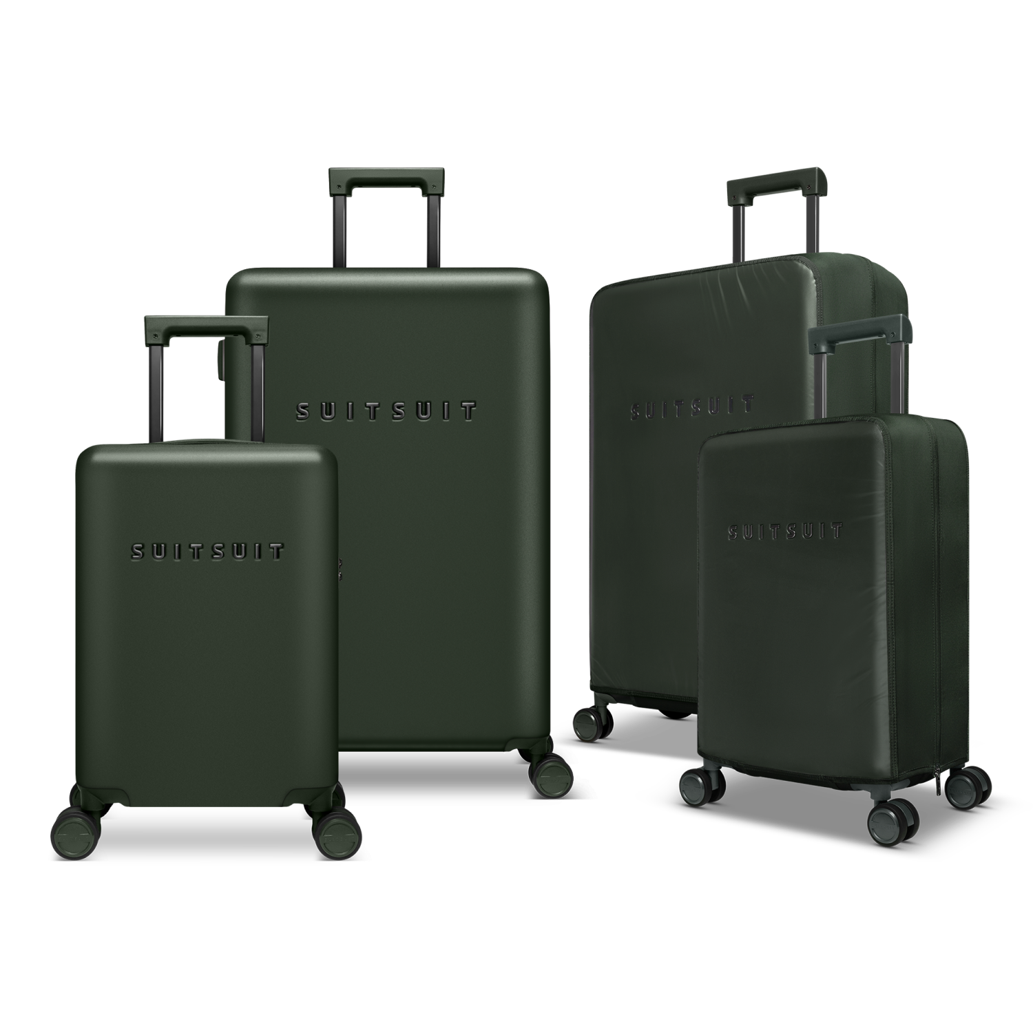 - This set includes the Dark Olive suitcase (76 CM), the Dark Olive carry-on suitcase (55 CM), and two Dark Olive protection covers (55 CM and 76 CM).
