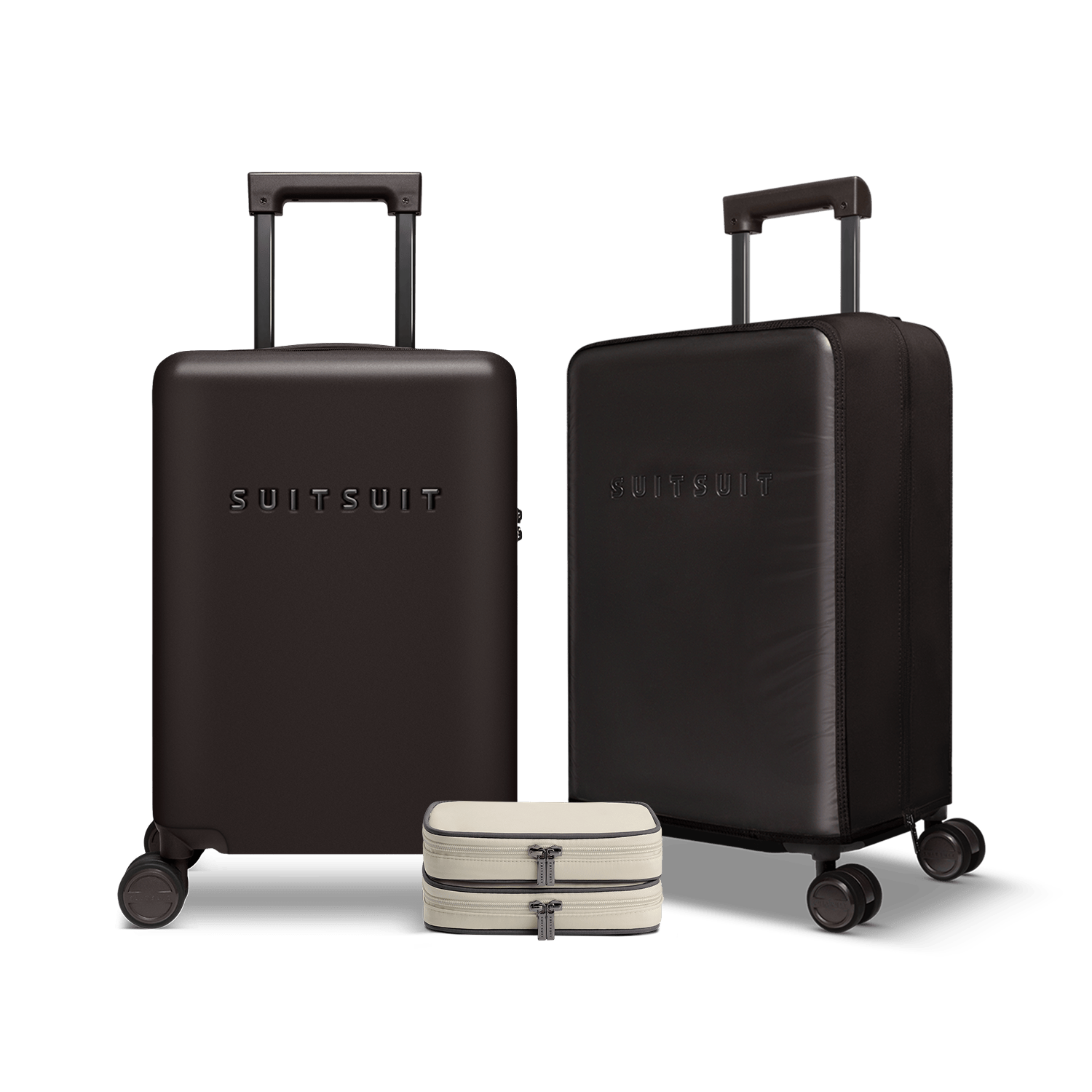 - This set contains the Ground Coffee carry-on suitcase (55 CM), the Ground Coffee protection cover (55 CM) and the Faded Sand packing cube set (55 CM).