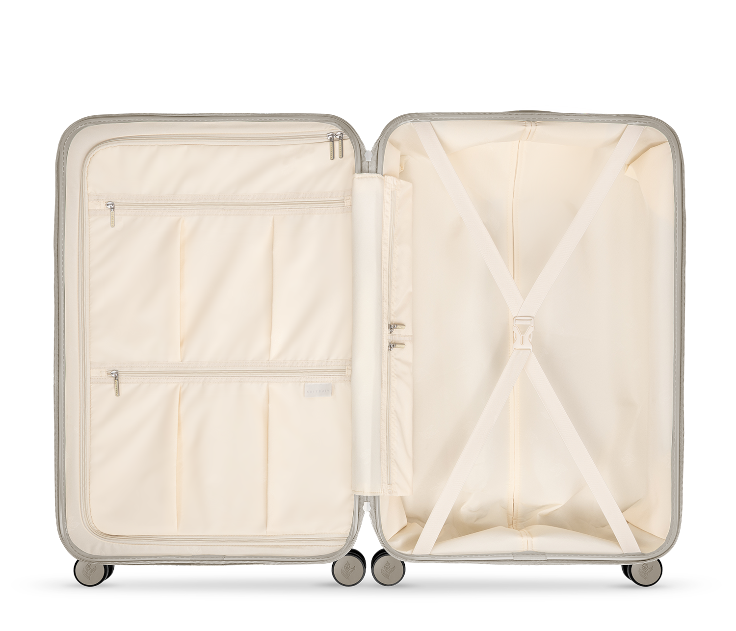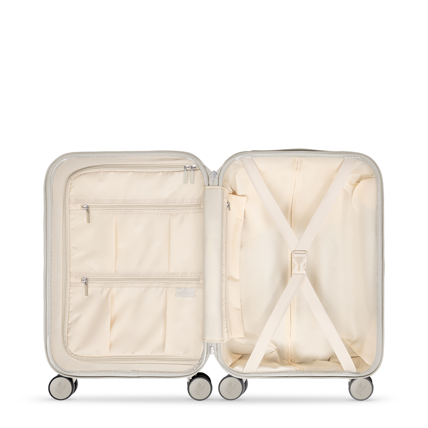 - This set includes the Bleached Sand check-in suitcase (76 CM), the Bleached Sand carry-on suitcase (55 CM), and two Four Leaf protection covers (55 CM and 76 CM).
