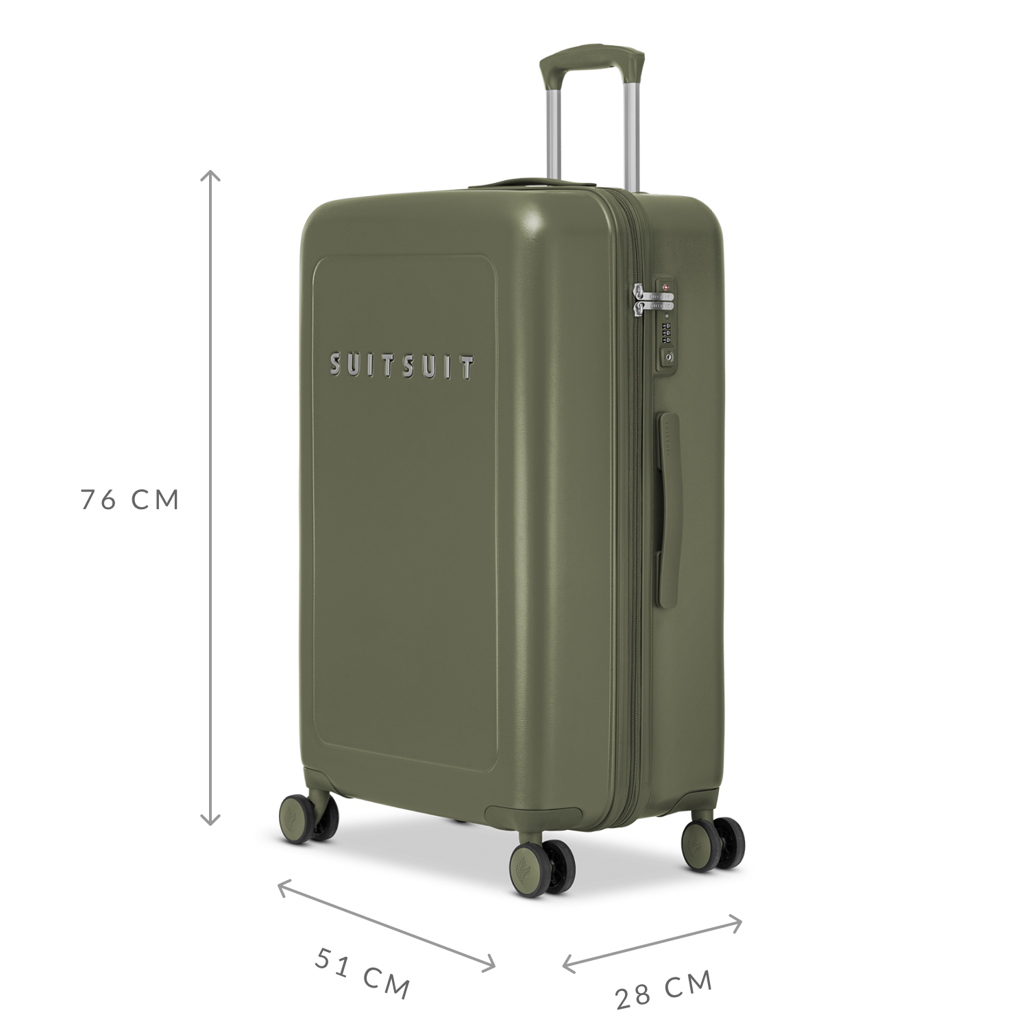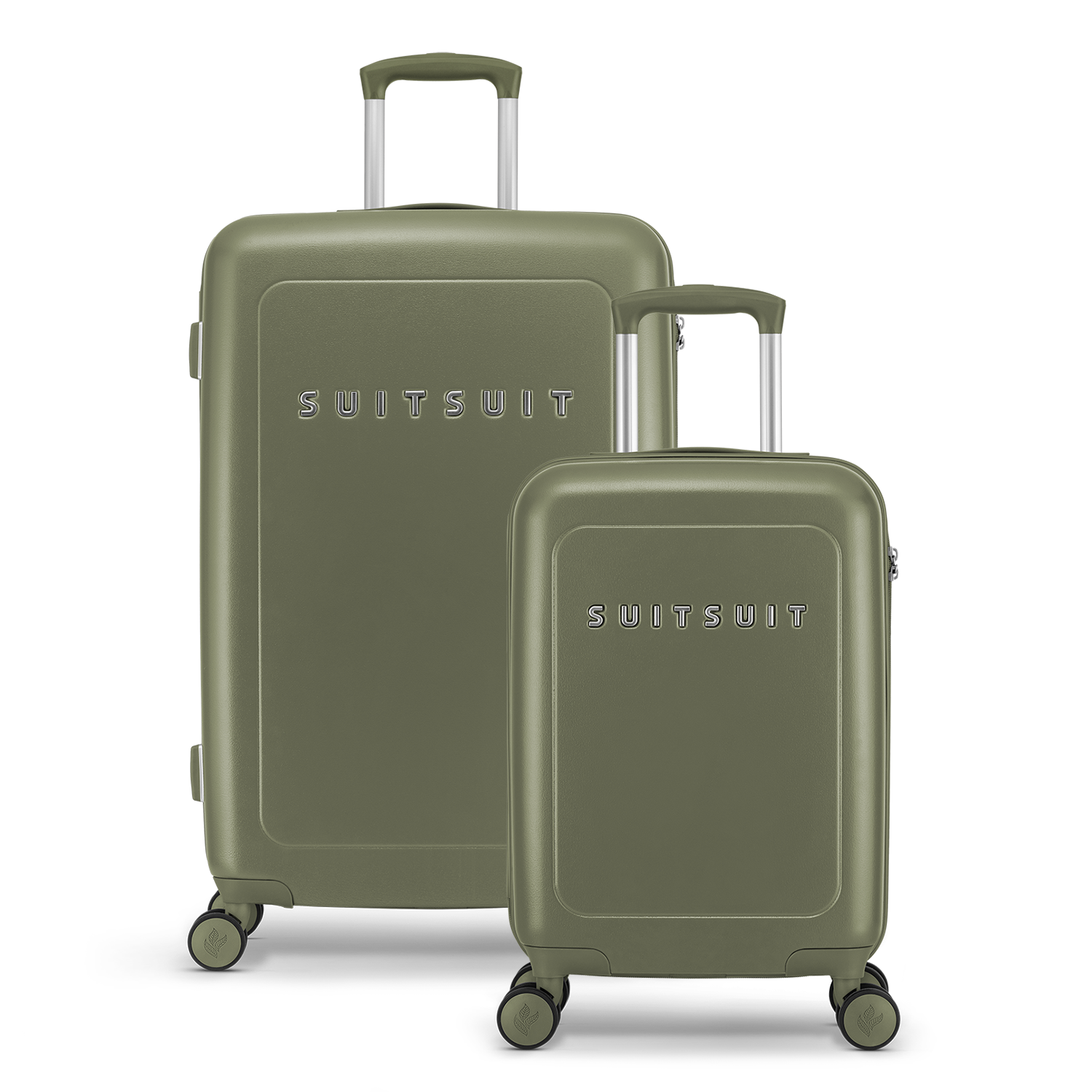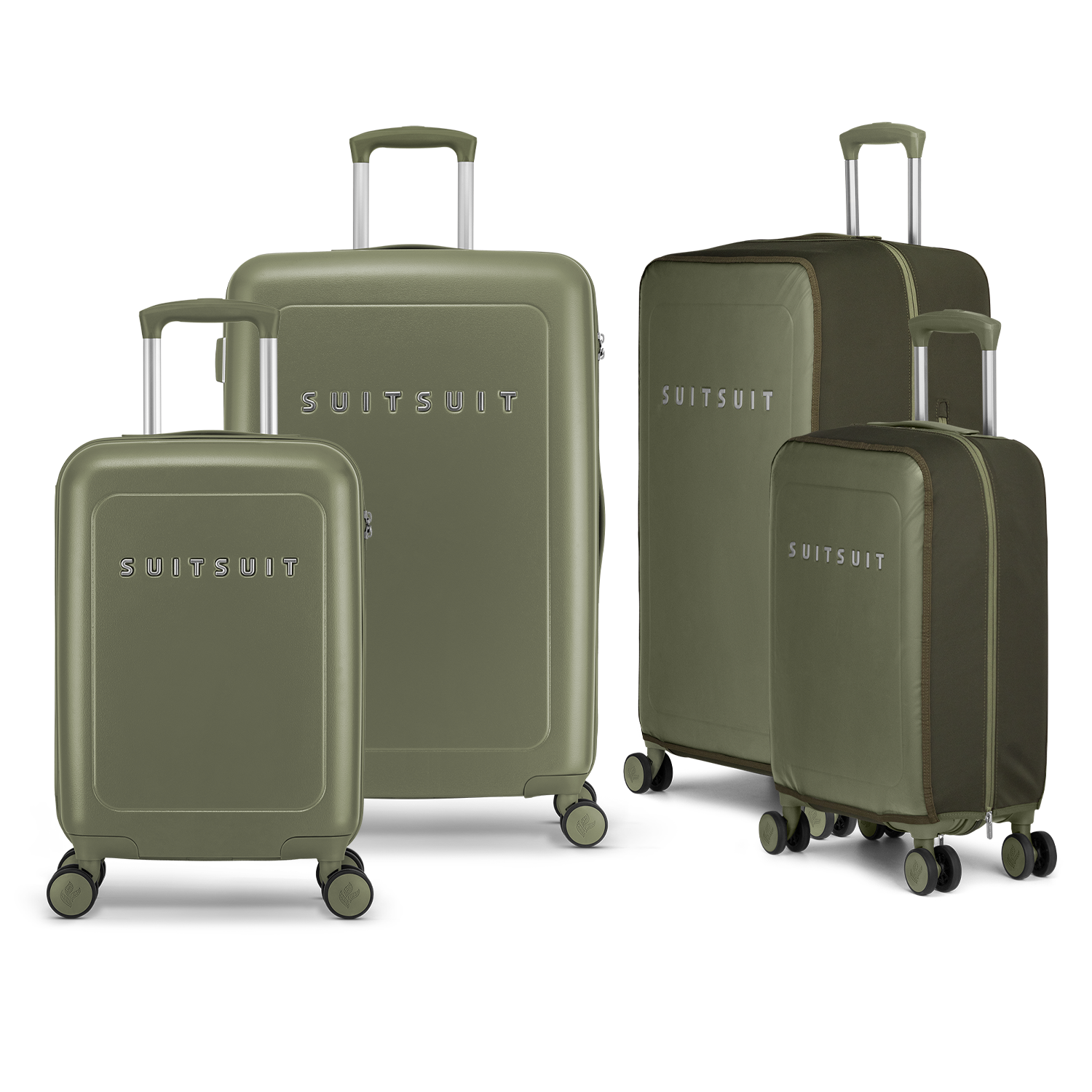 - This set includes the Dark Olive check-in suitcase (76 CM), the Dark Olive carry-on suitcase (55 CM), and two Four Leaf protection covers (55 CM and 76 CM).