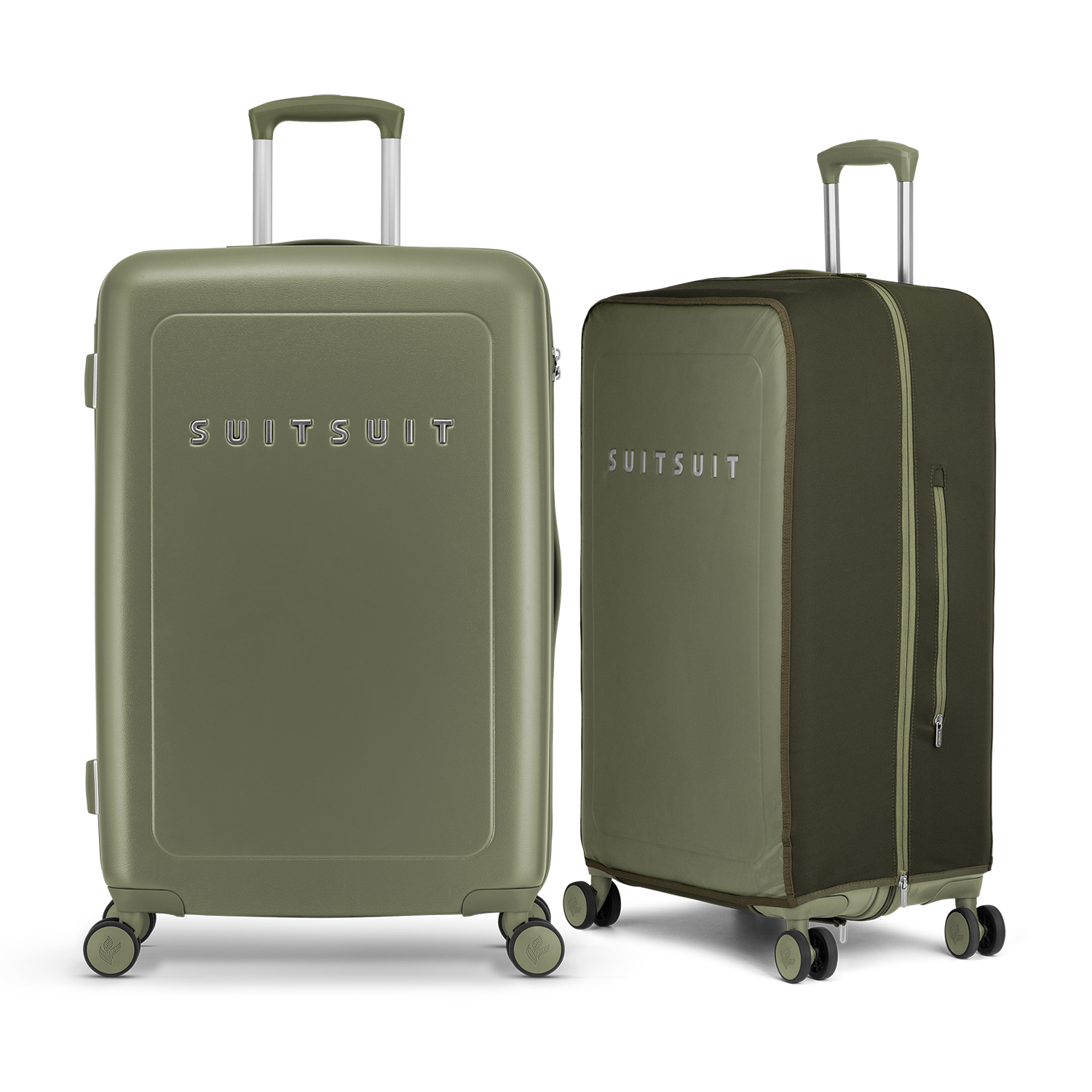 - This set contains the Dark Olive check-in suitcase (76 CM) and the Four Leaf protection cover (76 CM).