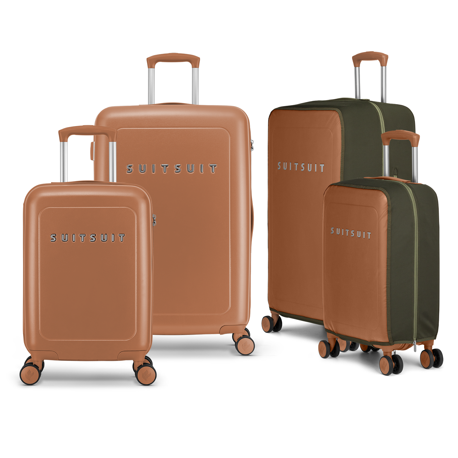 - Cet ensemble comprend le Maroon Oak Soute valise (76 cm), le Maroon Oak Cabine valise (55 cm), et deux quatre feuilles Housses de Protection (55 cm et 76 cm).